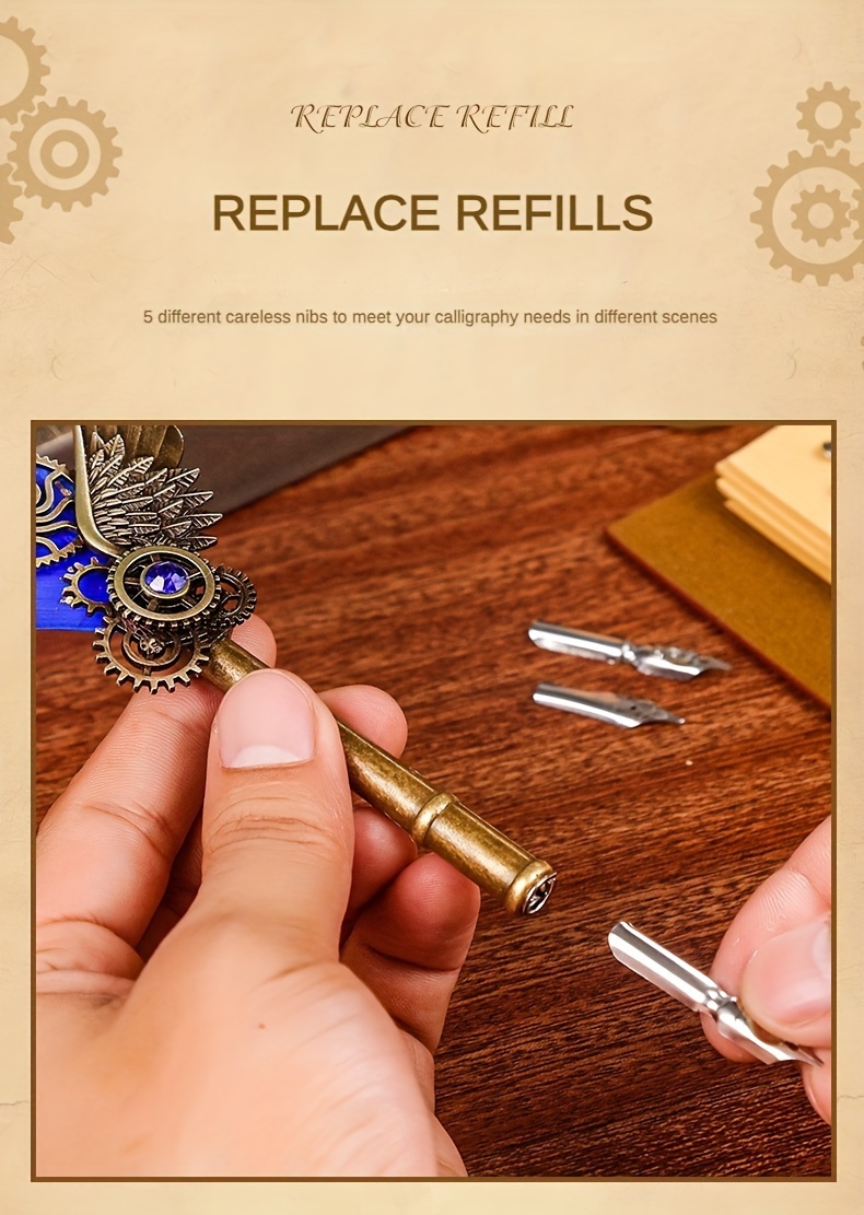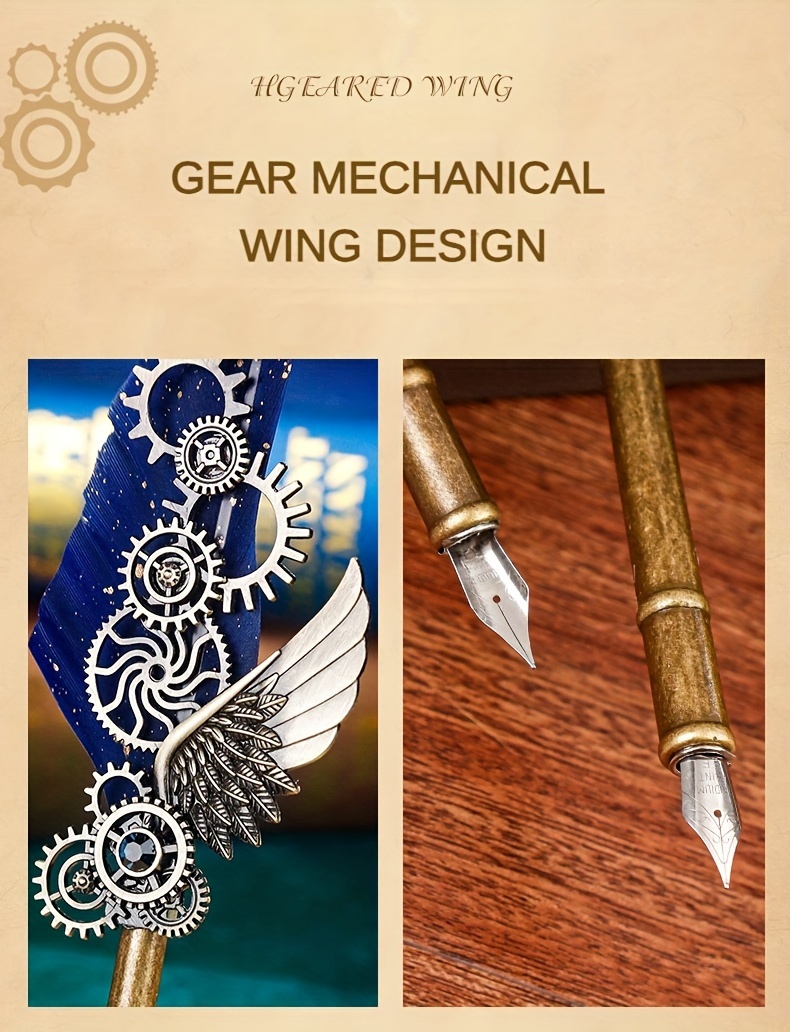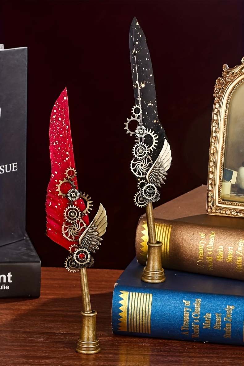 1 set of artificial feathers vintage mechanical gear pen