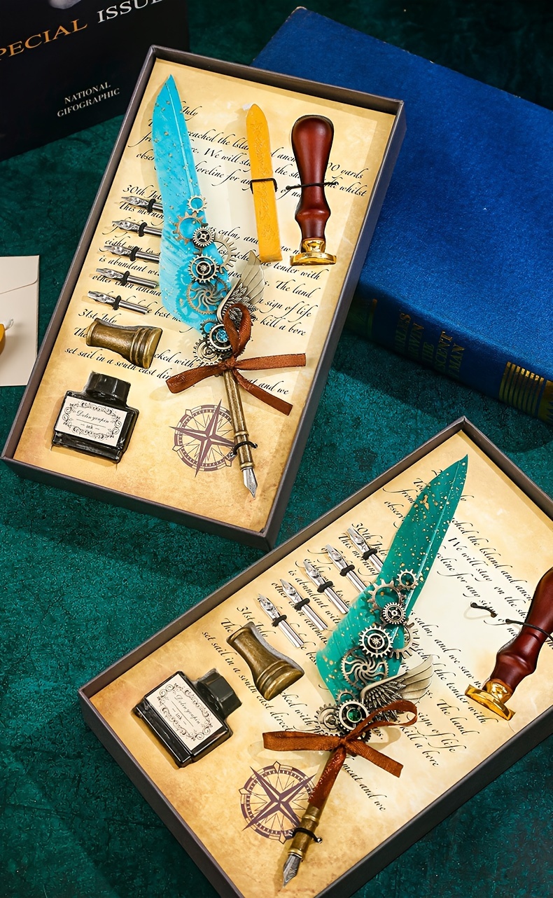 - with wax print, brass base, and authentic retro writing experience with artistic ink dipping