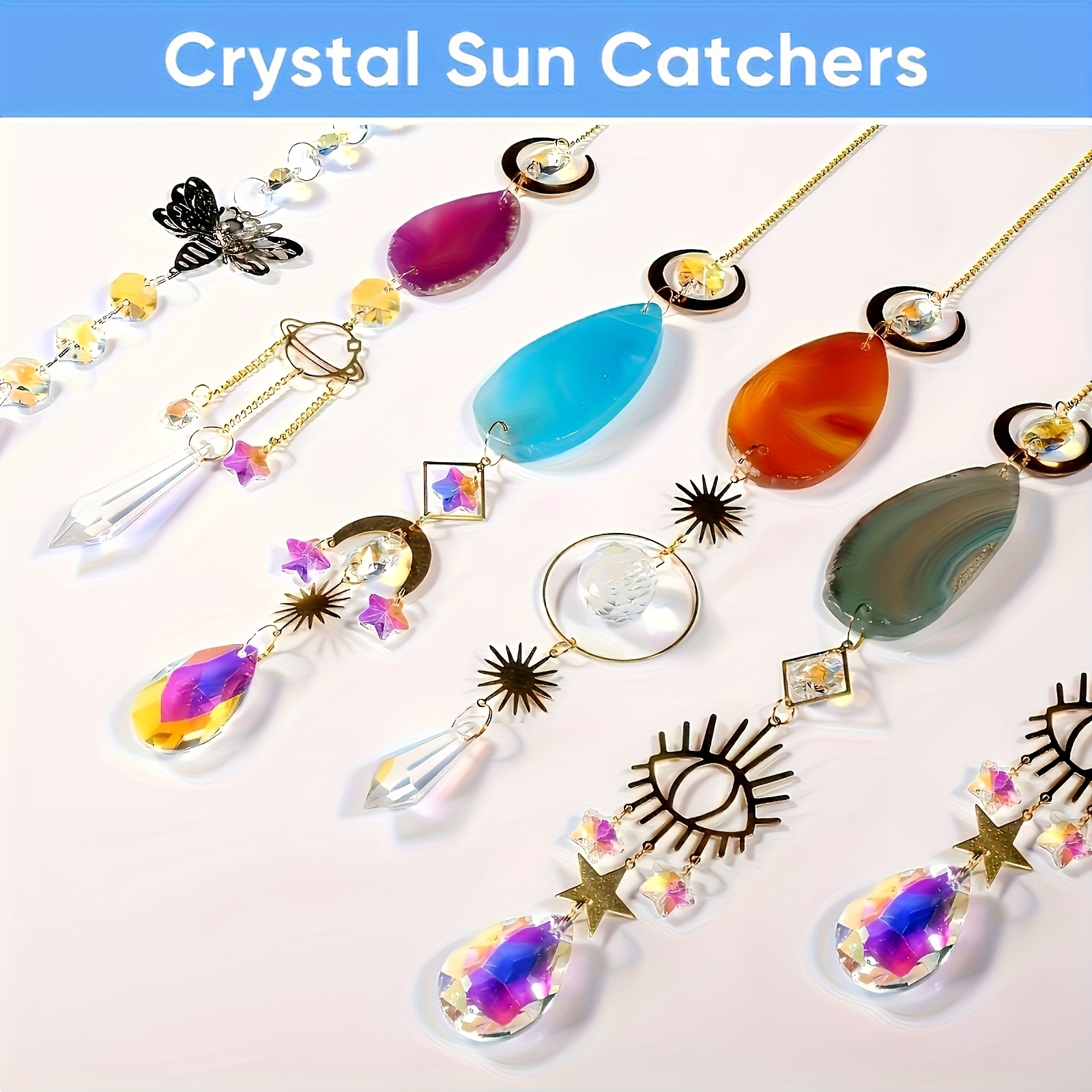- 7pcs Crystal Sun Catchers, Hanging Sun Catcher with Crystal Lamp, Indoor Sun Catcher with Prism Pendant Agate Slices, Tree Of Crystal Sun Catcher Indoor Outdoor Family Garden Decor